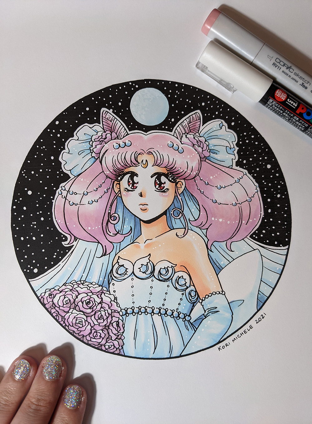 Sailor Moon (manga) fanart of Princess Chibiusa; ink and marker on paper