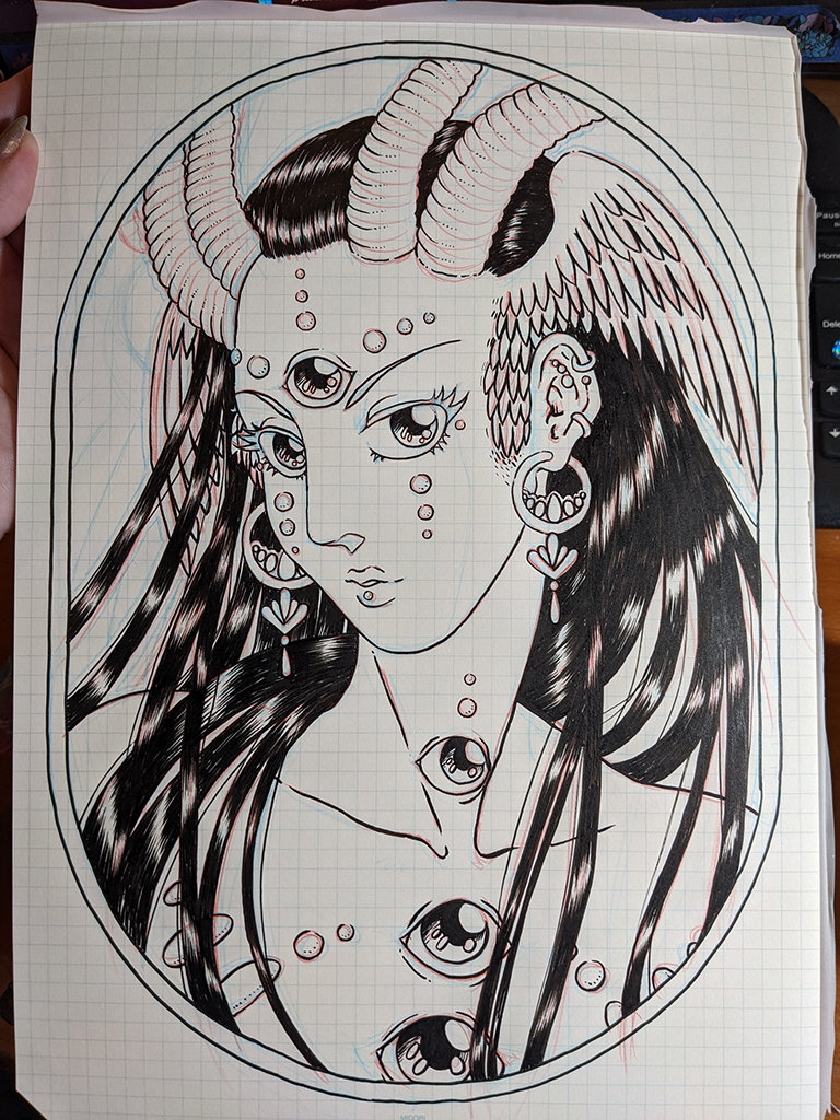 Following are three illustrations; ink, watercolor, digital color on paper.