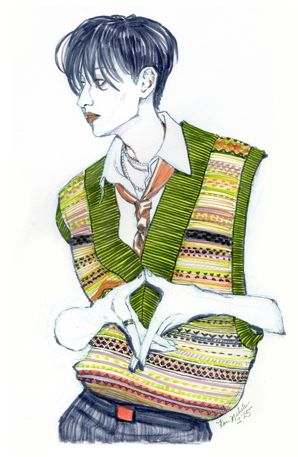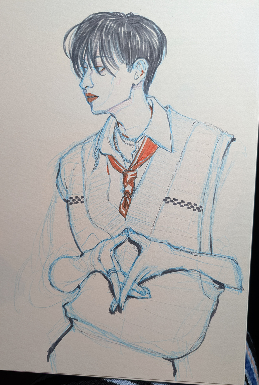 Jun (Seventeen) based on "Spell" music video; ink and marker on paper