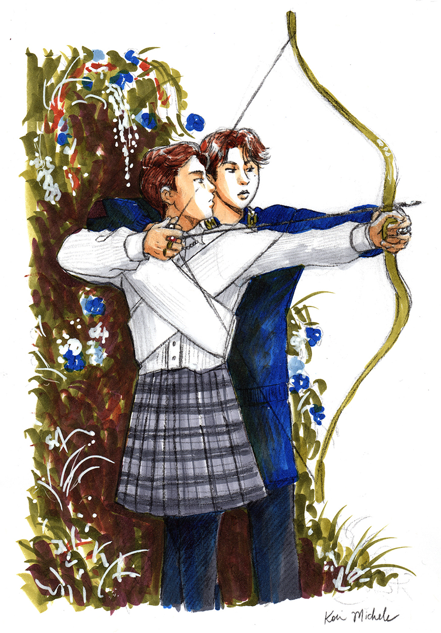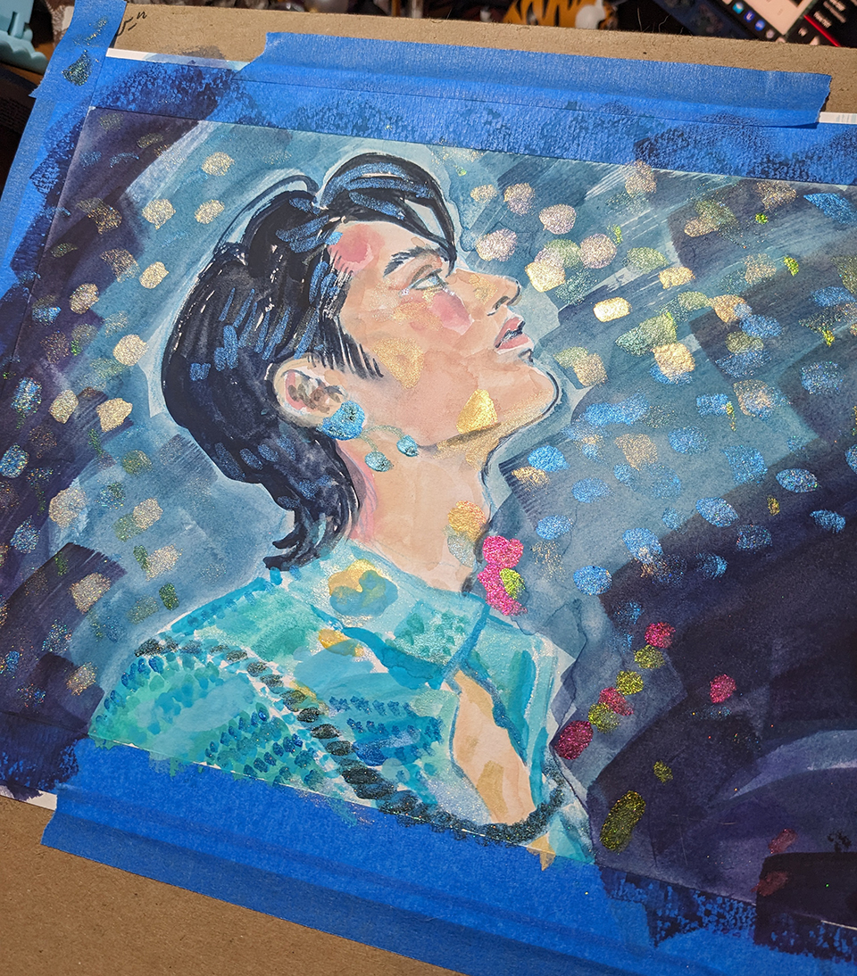 Jun (Seventeen) based on "Spell" music video; gouache and watercolor on paper
