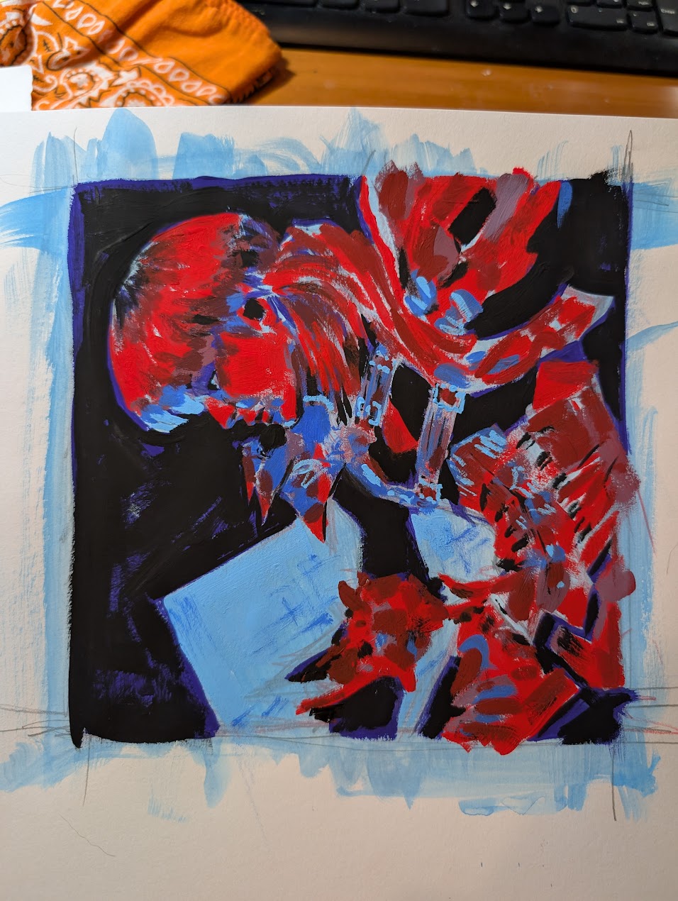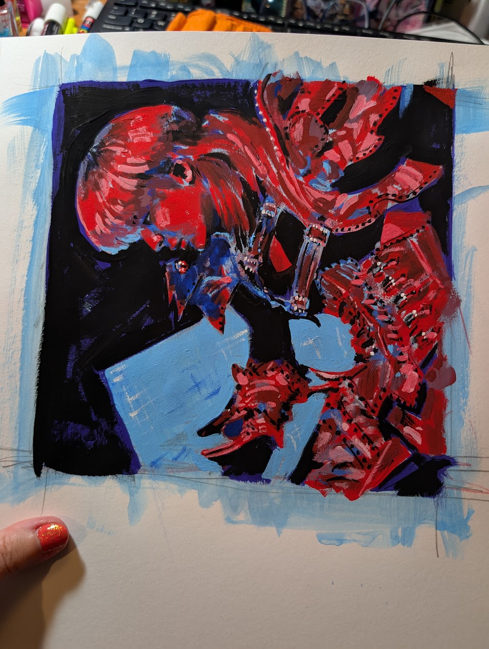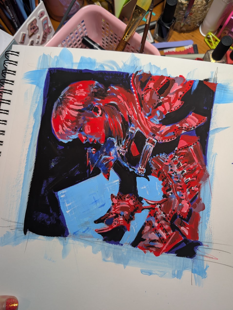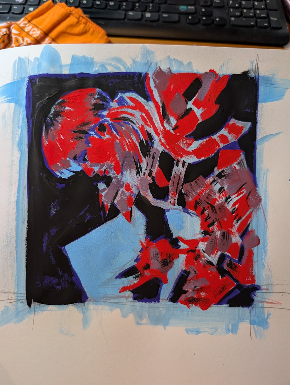 Evening paint study of Key performing at Keyland Uncanny Valley 2025. Gouache on paper.