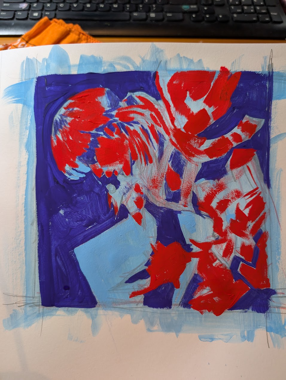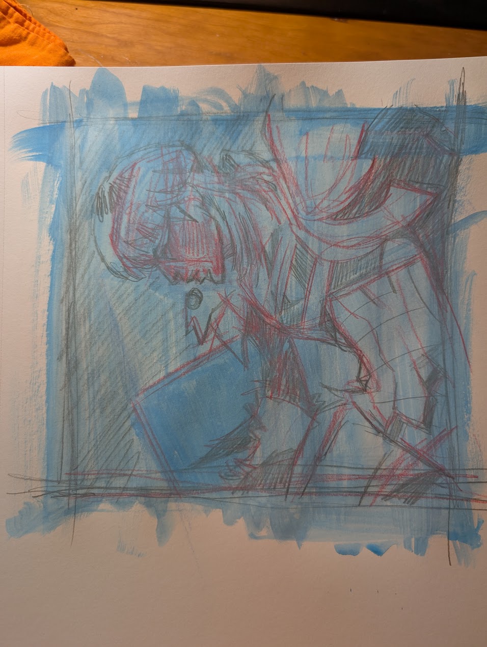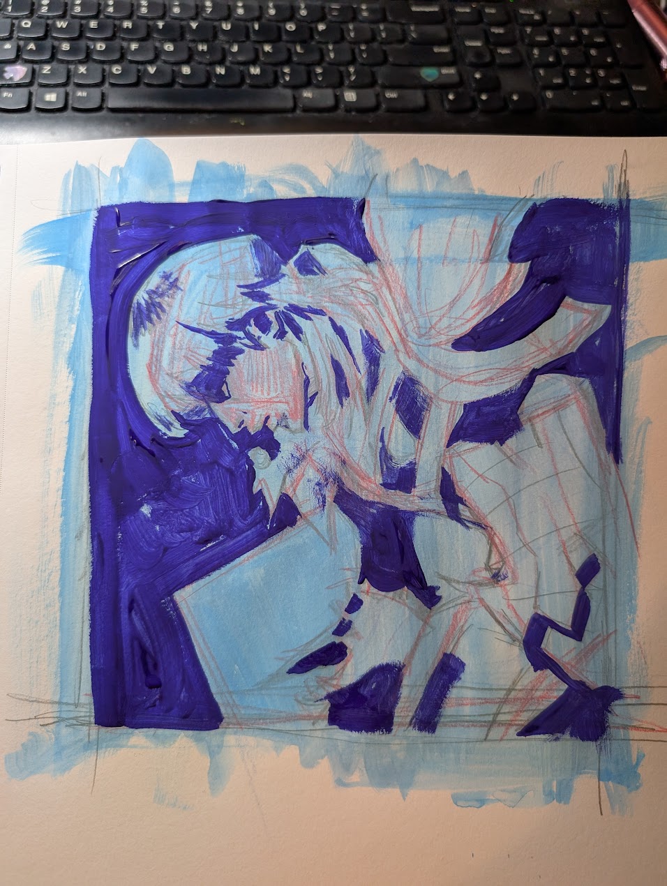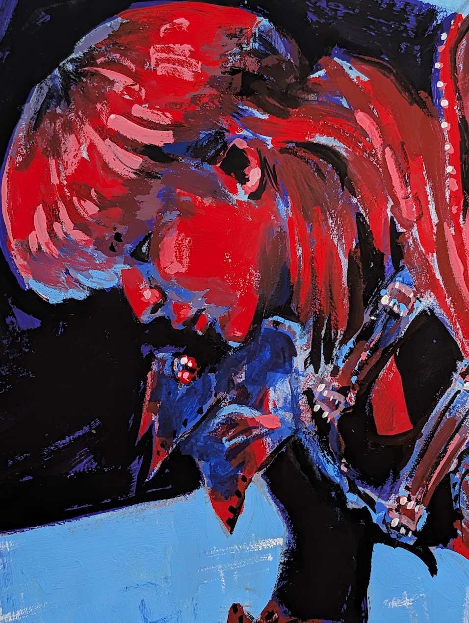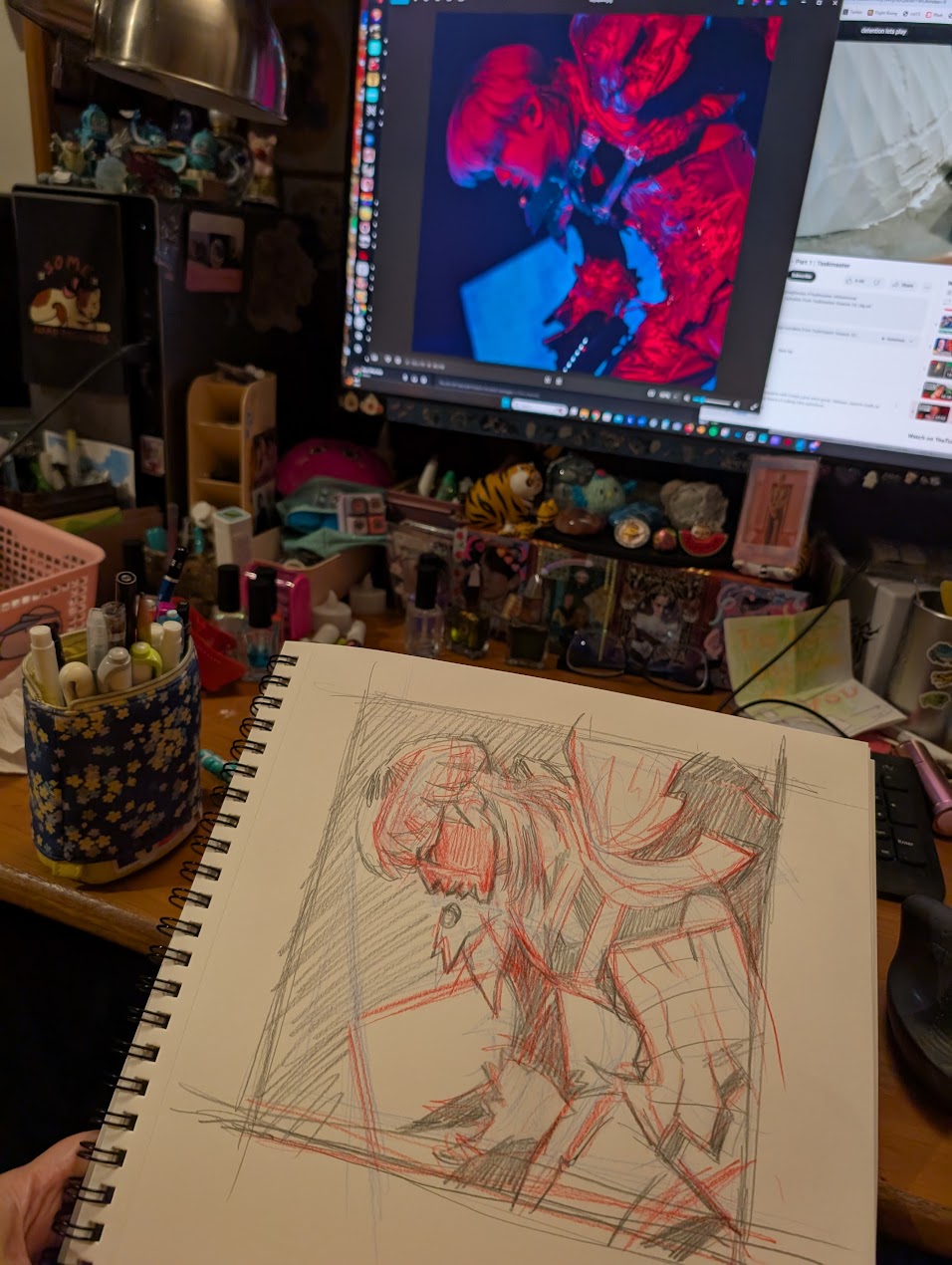 Evening paint study of Key performing at Keyland Uncanny Valley 2025. Gouache on paper.