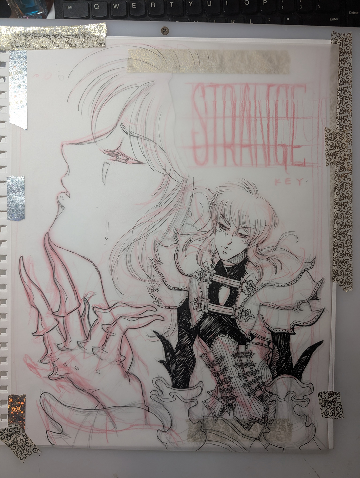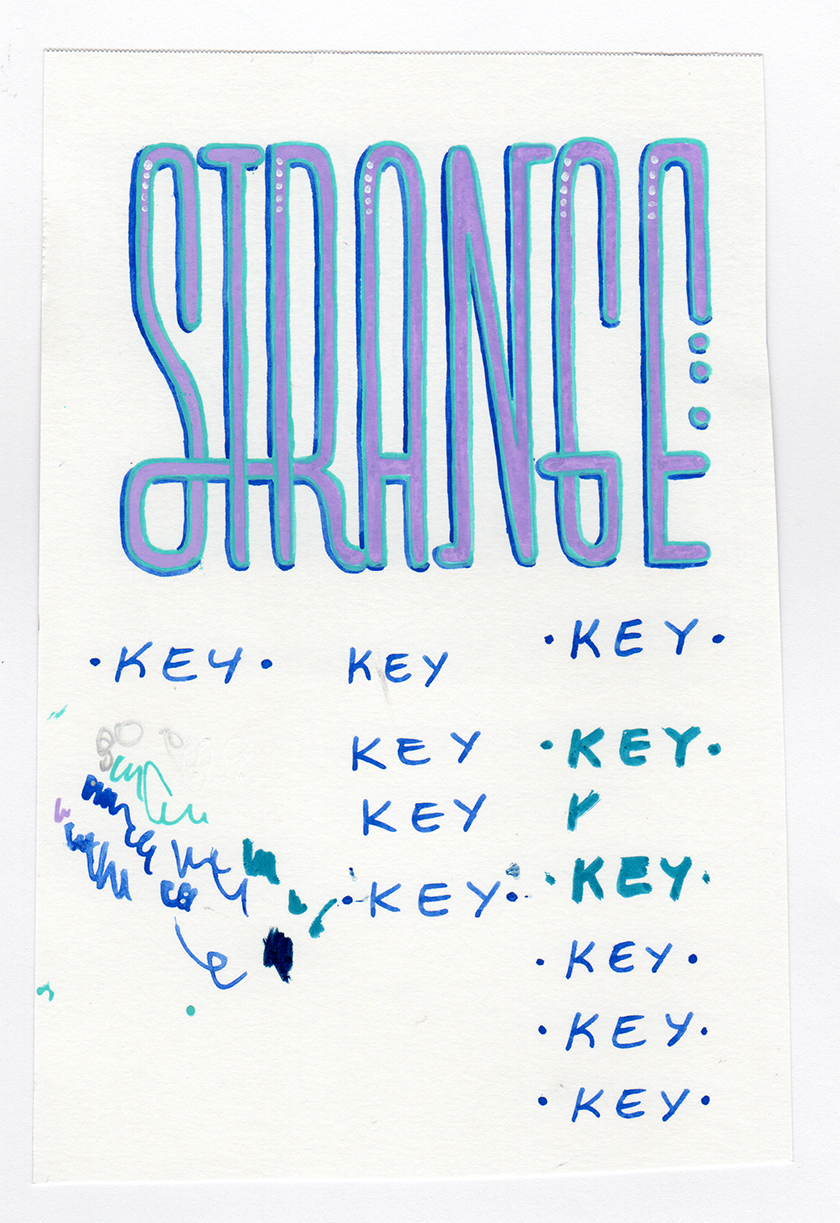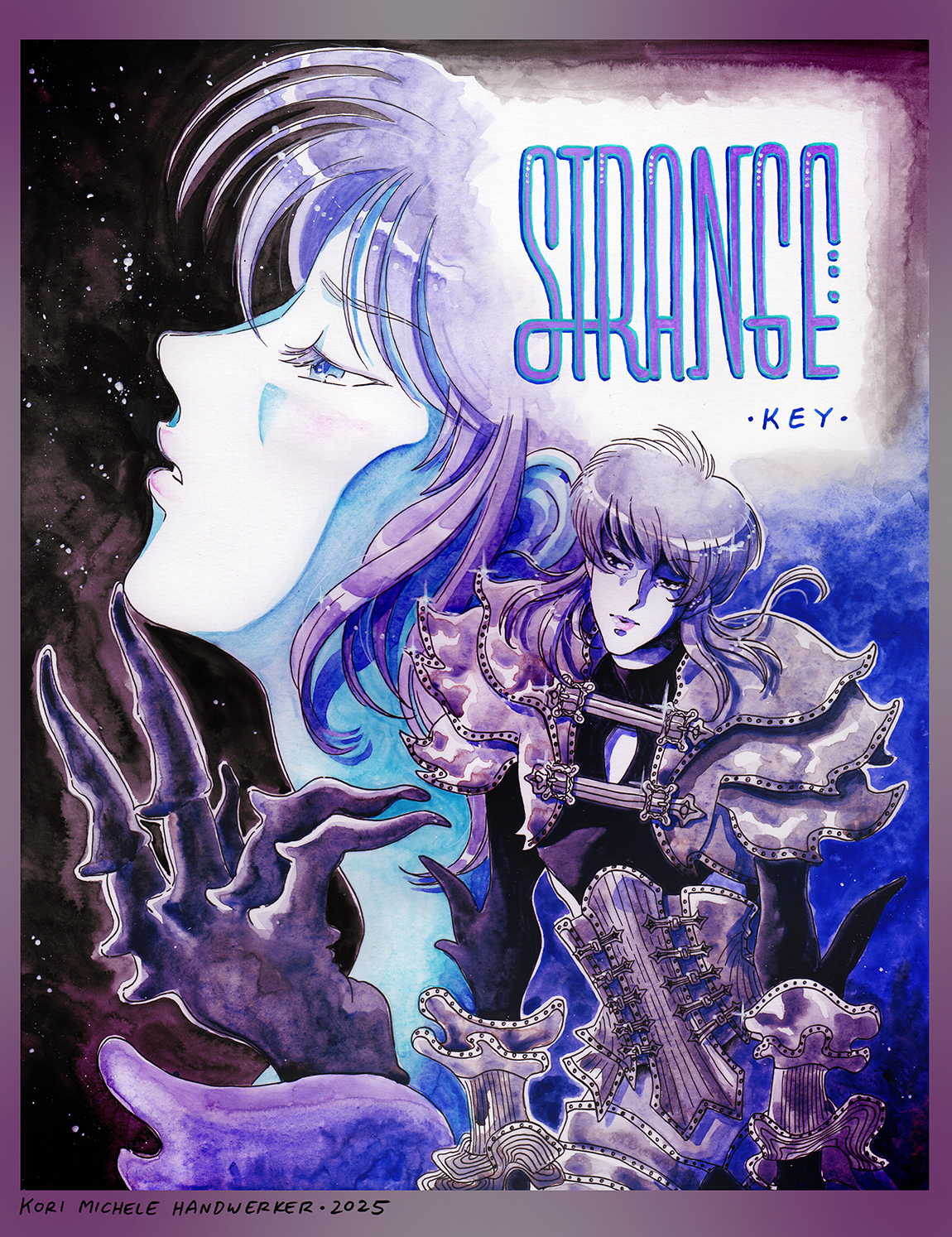 Watercolor and ink illustration of "Strange" as performed at Keyland Uncanny Valley Seoul, September 2025. Holbein Gouache, Faber-Castell Pitt Pen, Posca paint marker on bristol.